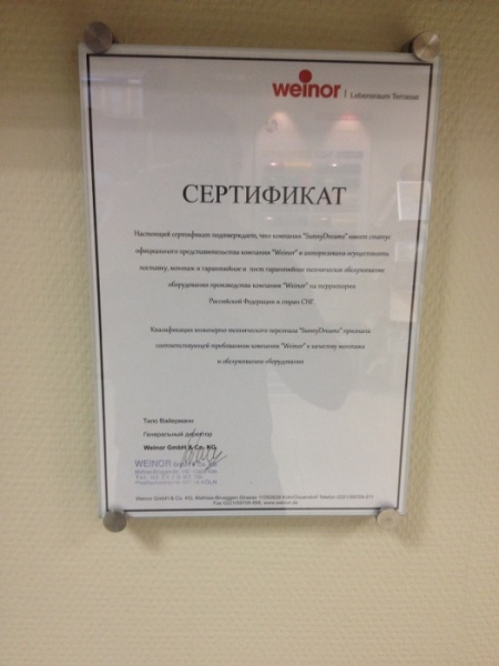 Компания «Sunny Dreams» является более 12 лет официальным представителем компании Weinor Германия на территории России.Мы выбрали именно компанию Weinor и предлагаем,как вы заметите или заметили по нашему сайту в основном только продукцию Weinor,так как за это время мы на личном опыте убедились в красоте,качестве и надежности систем Weinor.За это время мы выполнили внушительные объемы всевозможных заказов и оборудовали не одну зону отдыха.Небольшое количество фотографий выполненных нами объектов можно посмотреть в разделе "Портфолио" нашего сайта.Для нас важен каждый клиент! Не важно штучная ли это система или большой заказ,Вы всегда получите максимально емкую и грамотную консультацию специалистов нашей компании.